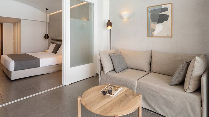 - pokój występuje w dwóch wariantach: jako pokój z dwiema sypialniami oddzielonymi drzwiami przesuwnymi lub jako dwupoziomowy pokój typu maisonette ze strefą sypialnianą na antresoli