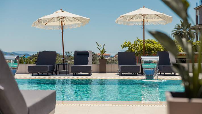 • leżaki i parasole przy basenie