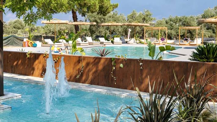 - leżaki i parasole przy basenach
